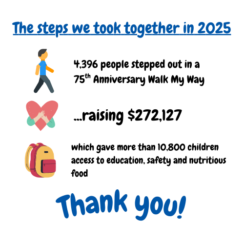Helen shares the reason she decided to Walk My Way: “Our own children had a great education offered to them with so many opportunities. I knew that if we could do the same for at-risk children, it would give them hope for their futures.’